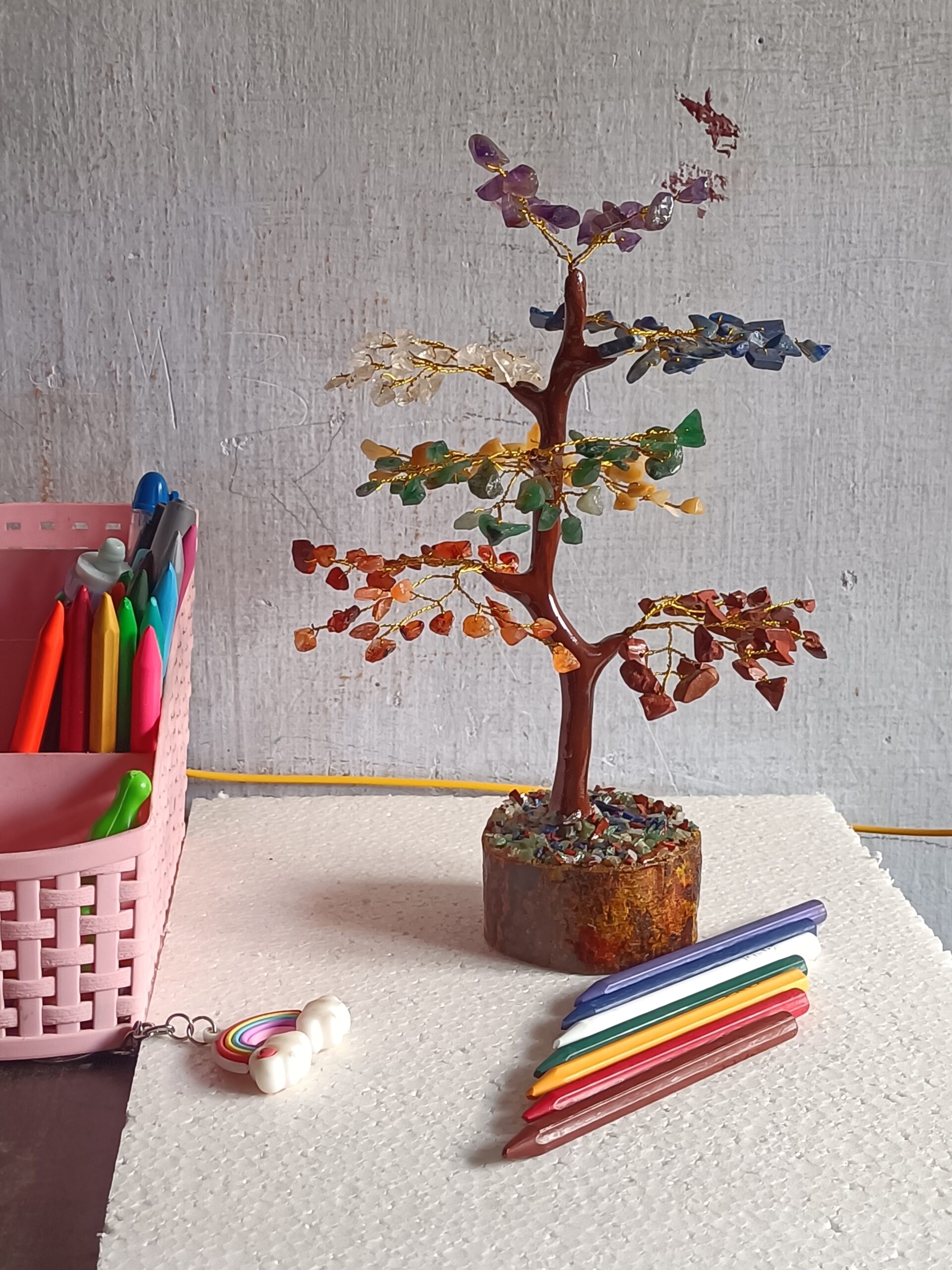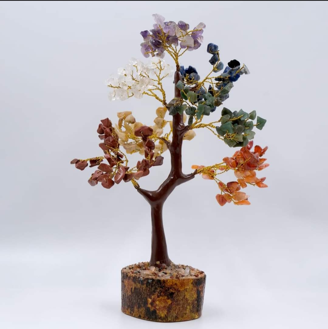 A 7 chakra crystal tree is believed to promote spiritual, emotional, and physical well-being by balancing the body’s energy centers, enhancing positive energy in a space, aiding in meditation, fostering personal growth, and improving mental clarity and emotional stability. The tree’s combination of vibrant crystals and its symbolism as the “Tree of Life“ also adds aesthetic appeal to any home or office, making it a decorative piece that can also serve as a focal point for healing practices like yoga and Reiki.